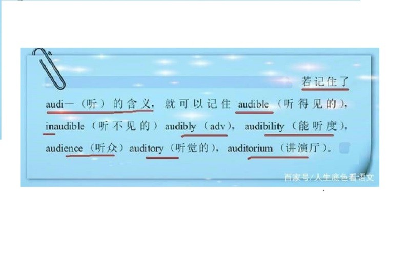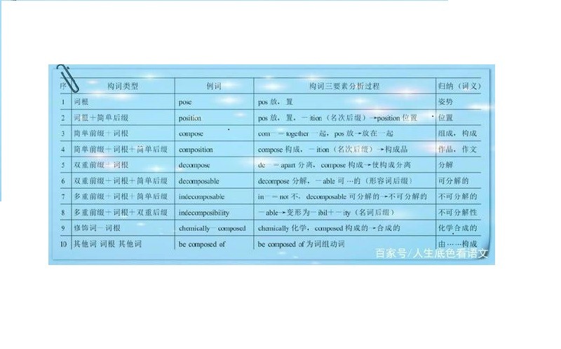我们可以通过对已经学会的单词进行结构分析,了解构成这些单词词根的意思,这有助于提高我们记忆单词的效率。