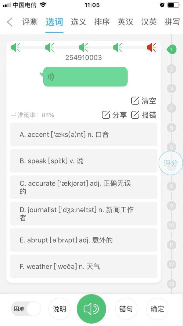 听句选词,听句选义,听句排序,句子听写,听句填空,句子发音测评,