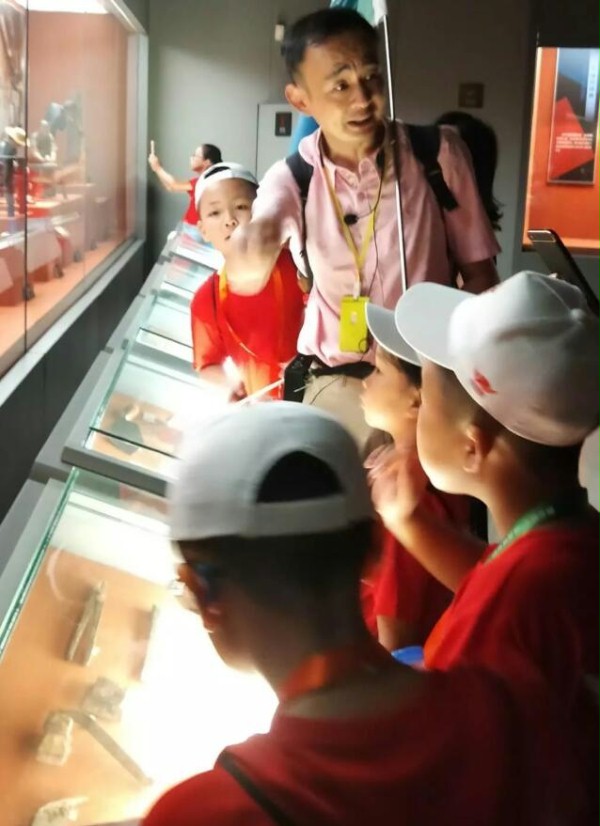 研学导师正在讲解刀剪剑的历史文化